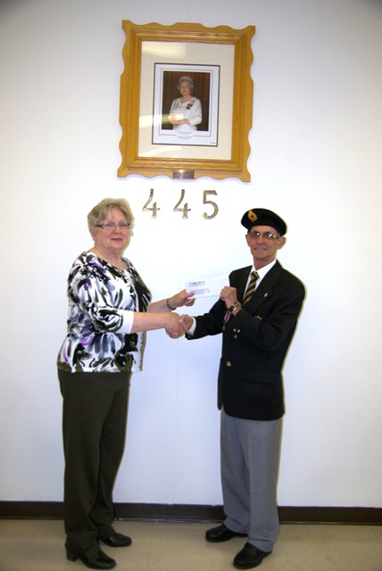 Comrade Tony Gagliardi presents a cheque to Rosemary Dupuis of the Callander Food Bank